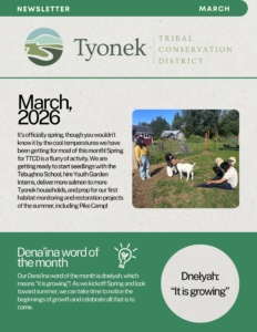 February is starting to bring longer days and with it, an eye toward summer planning. TTCD’s Habitat Monitoring and Restoration team is currently hiring Conservation Technicians for the coming 2026 field season to join our team in implementing annual biological field tasks. Visit ttcd.org/job-opportunities/ to learn more. Our team has also been focused on analyzing summer data, running the Tyonek Gather Market, and engaging Tebughna students in the Salmon in the Classroom program!